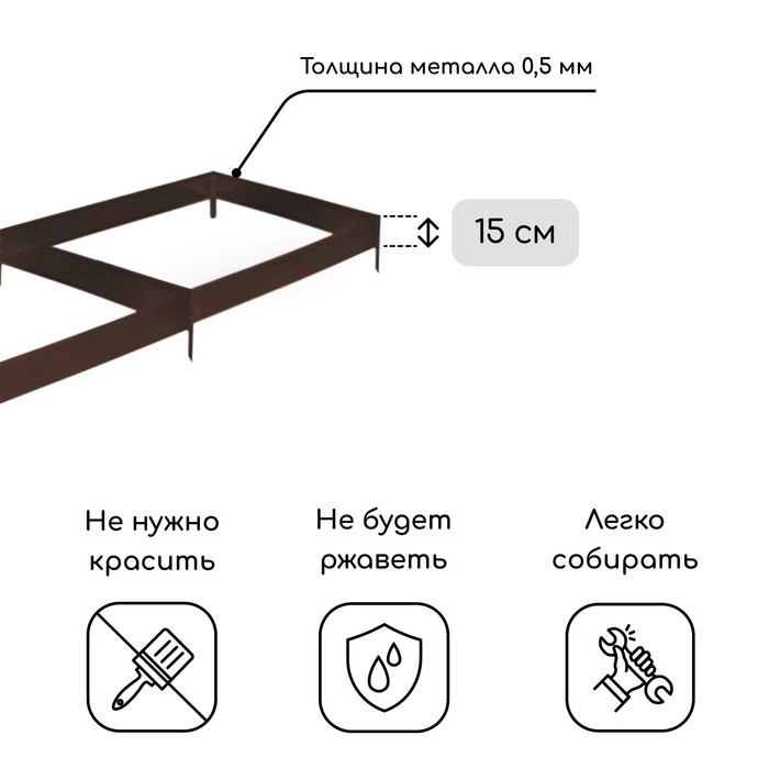 Грядка оцинкованная, 295 × 100 × 15 см, коричневая, Greengo