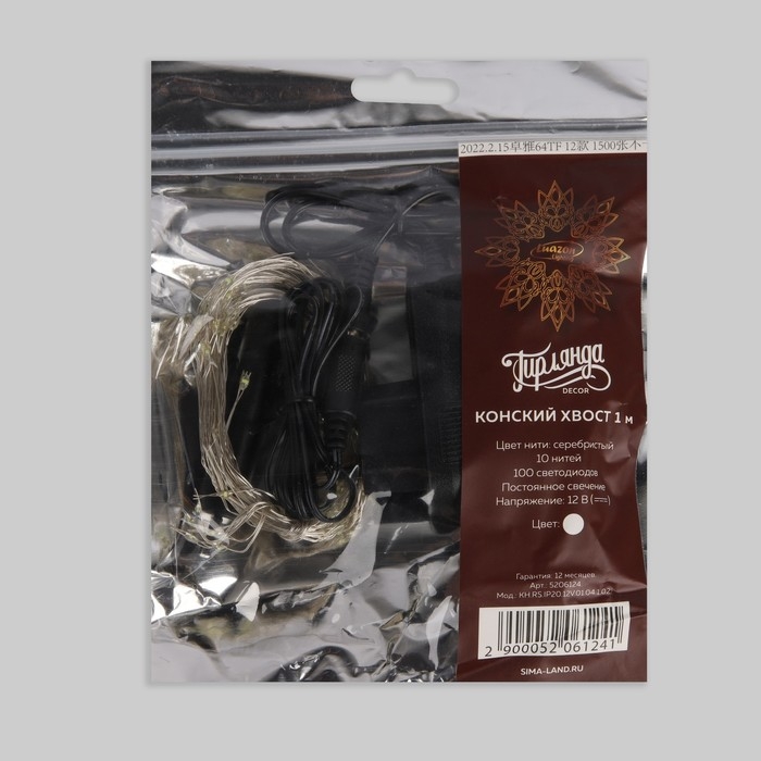 Гирлянда «Конский хвост» 10 нитей по 1 м, IP20, серебристая нить, 100 LED, свечение белое, 12 В