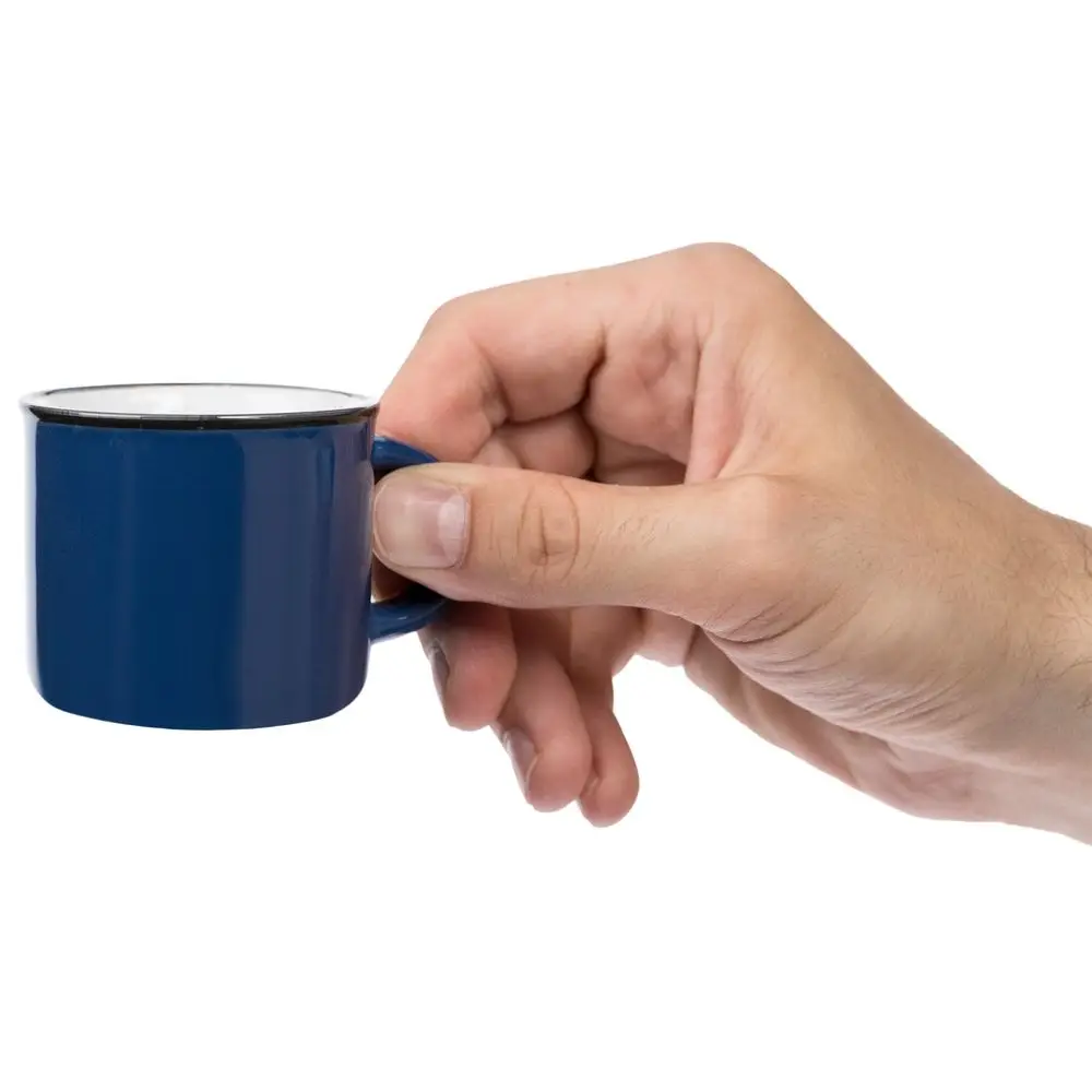 Кружка из фаянса, имитирующая ставшую классикой эмалированную посуду. Идеально подходит для подачи эспрессо.