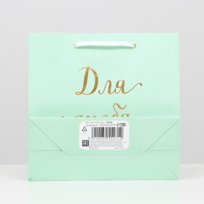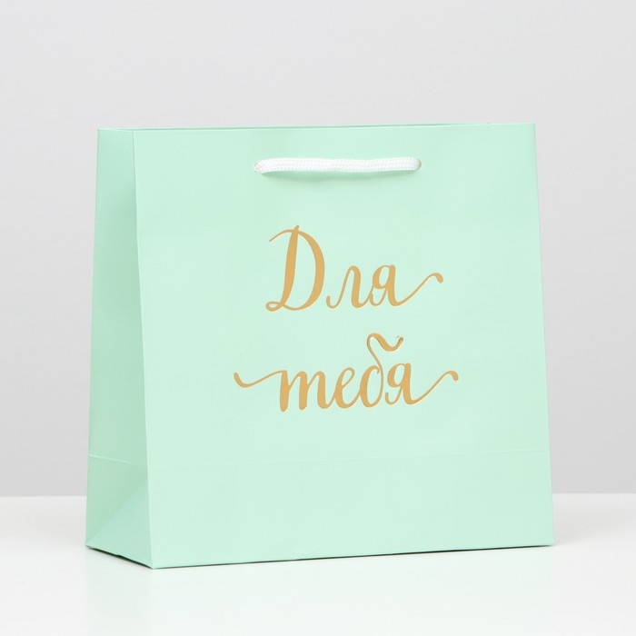 Пакет подарочный крафт "Для тебя", зелёный, 22,5 х 23 х 10 см, набор 12 шт.