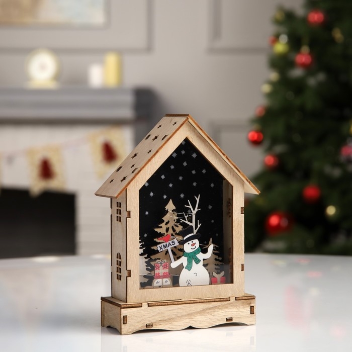 Светодиодная фигура «Домик со Снеговиком» 16 × 11 × 4.5 см, дерево, батарейки АААх2 (не в комплекте), свечение тёплое белое
