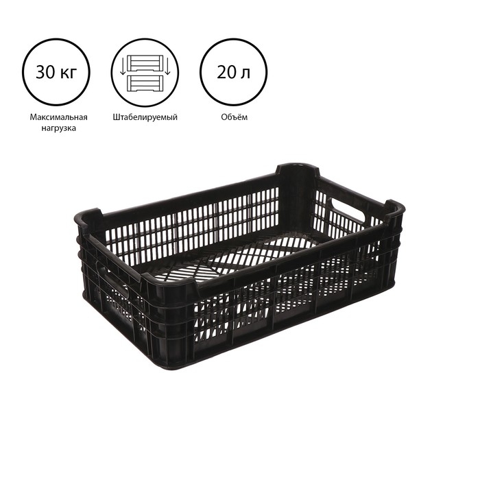 Ящик универсальный, пластиковый, 60 × 40 × 20 см, на 30 кг, чёрный