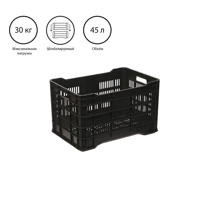 Ящик универсальный, пластиковый, 60 × 40 × 20 см, на 30 кг, чёрный