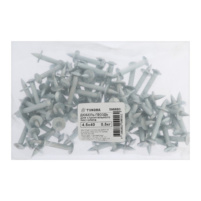 Дюбель-гвоздь "ТУНДРА", гвоздевой, для монтажного пистолета, оцинкованный, 4.5x40 мм, 0.5 кг