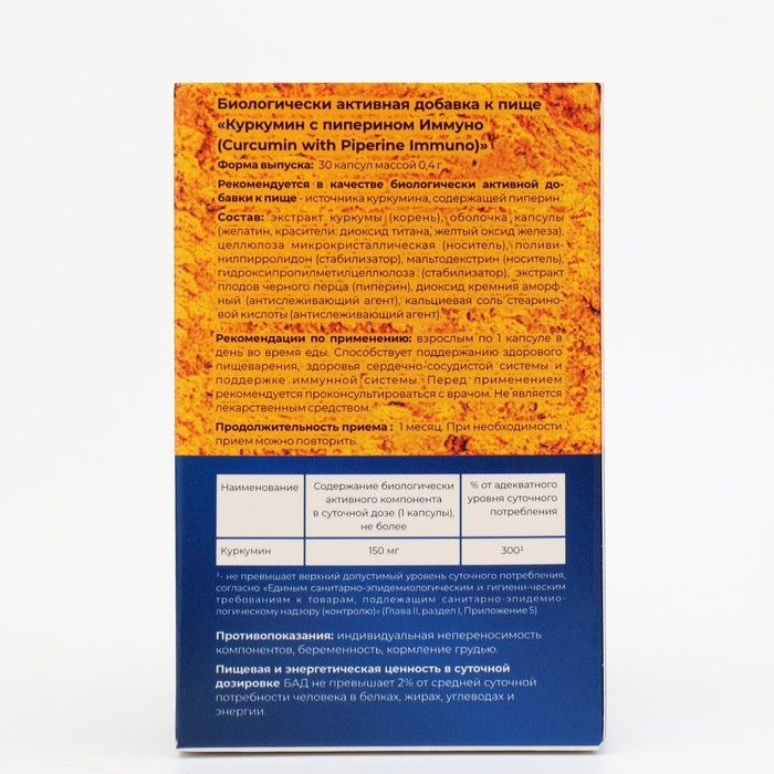 Куркумин с пиперином Иммуно, 30 капсул по 0,4 г