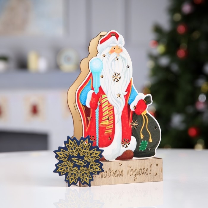 Светодиодная фигура «Дед Мороз» 14 × 20 × 2.5 см, дерево, батарейки LR1130х3 (в комплекте), свечение тёплое белое