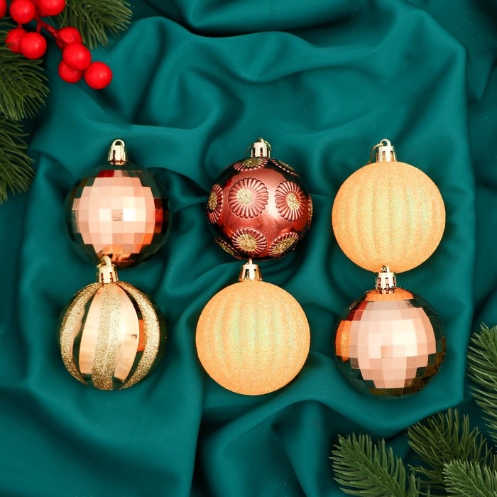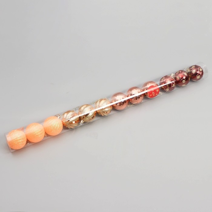 Набор шаров пластик d-6 см, 12 шт "Агнет" полосы, золотисто-оранжевый