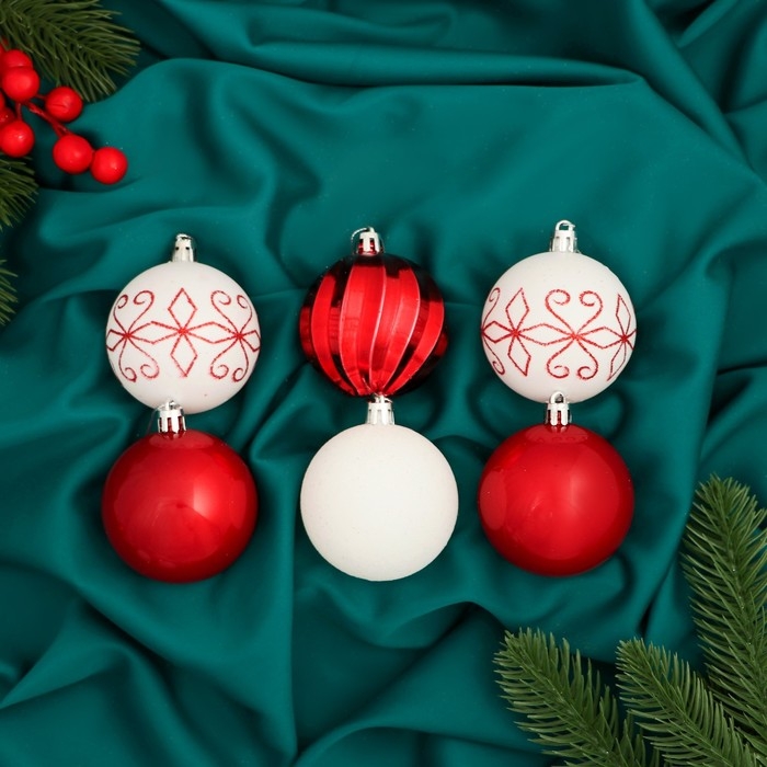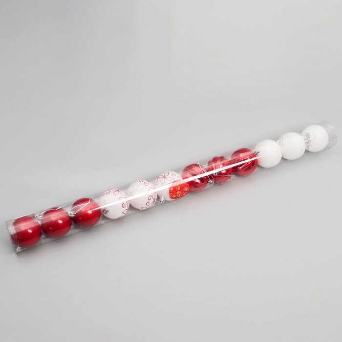 Набор шаров пластик d-6 см, 12 шт "Агнет" узоры, красно-белый