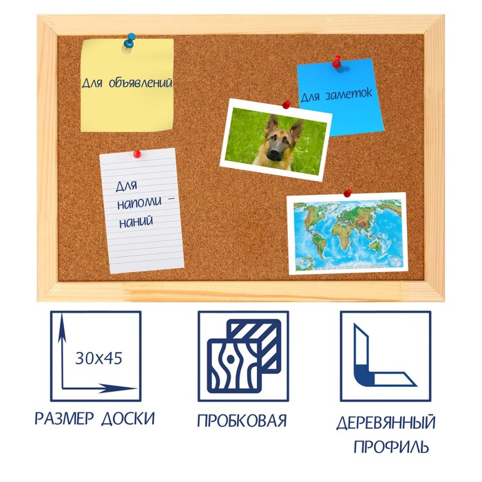 Доска пробковая А3, 30х45 см, Calligrata, в деревянной раме