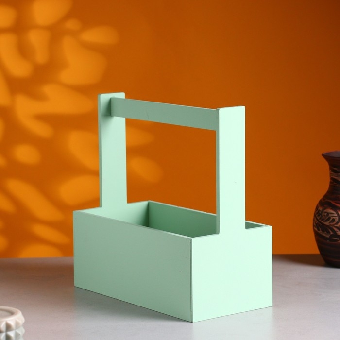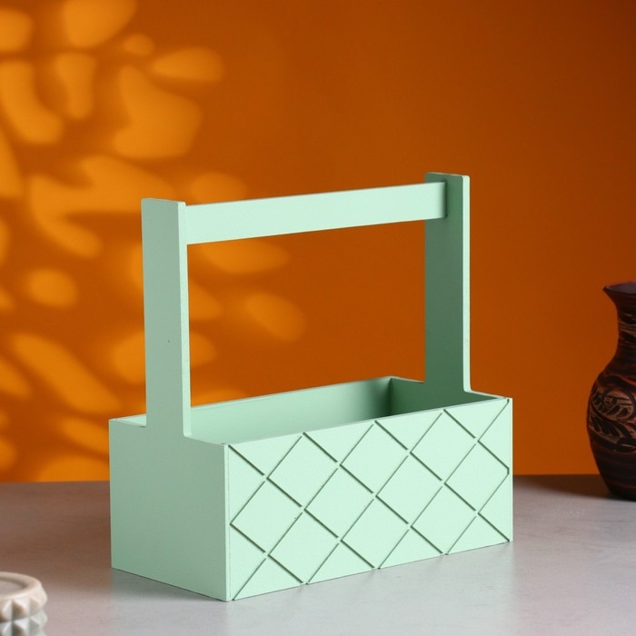 Кашпо деревянное "Эллада большая, сетка", с ручкой, 25×12,5×10(25) см Оливковый