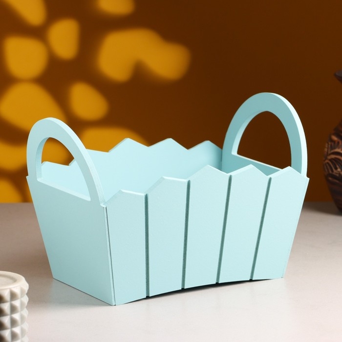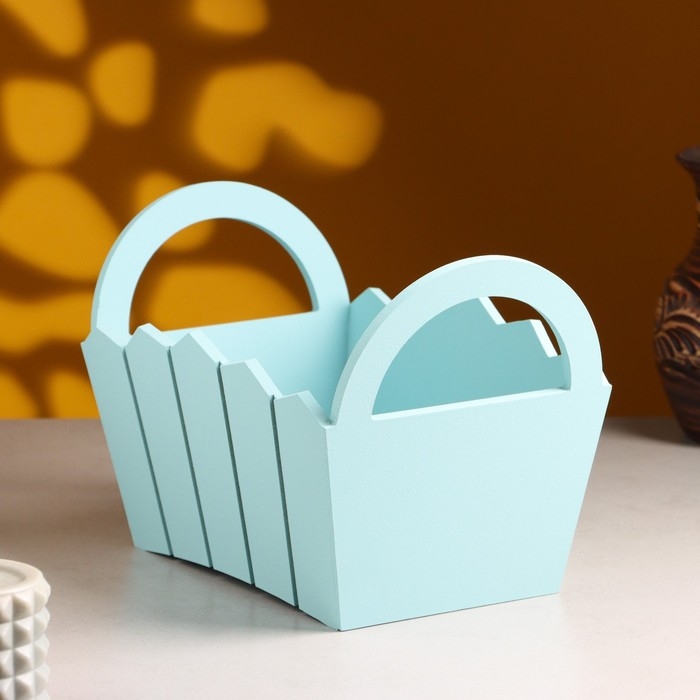Кашпо деревянное 25×16×17 см "Мария", ручки боковые, МДФ, Серо-голубой