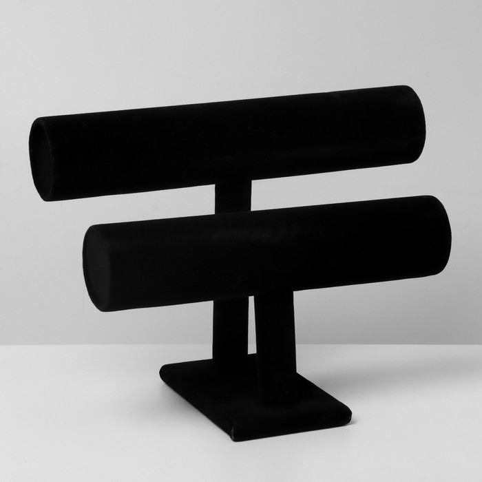 Подставка для часов, браслетов, двухуровневая, флок, 25,5×13×19 см, d=5 см, цвет чёрный