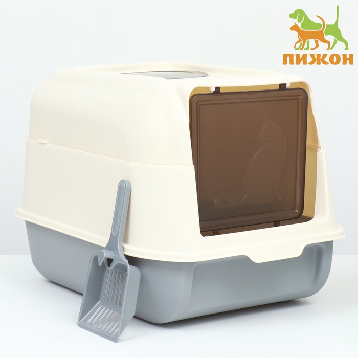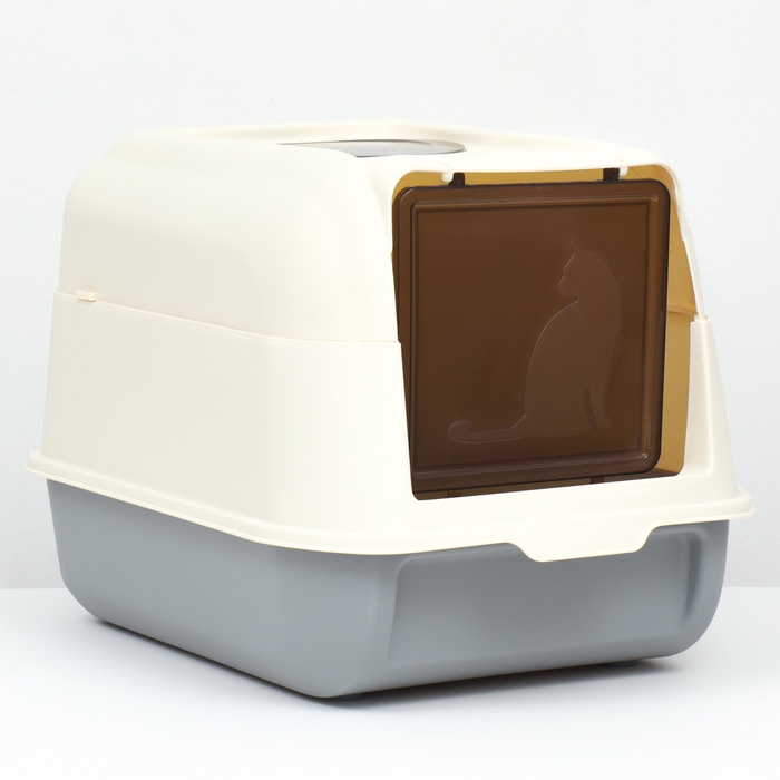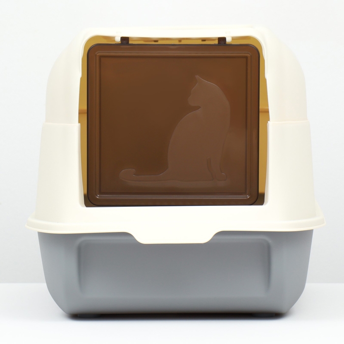 Туалет с прозрачными бортами с совком и фильтром, 50 х 34 х 18 см, коричневый