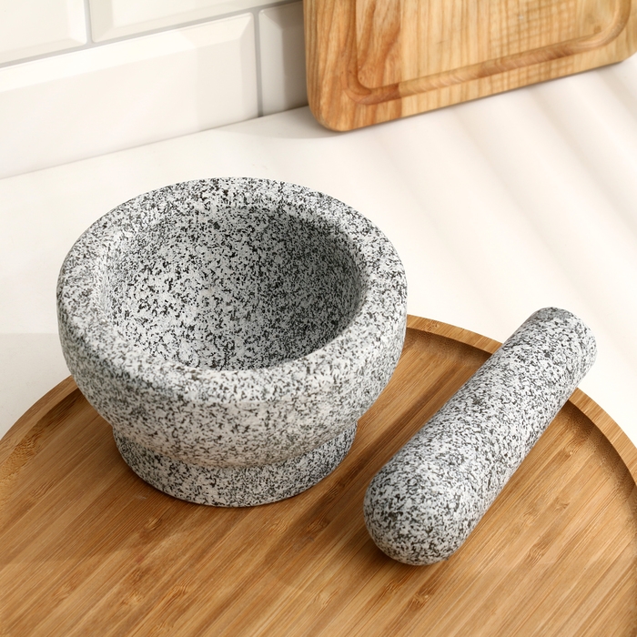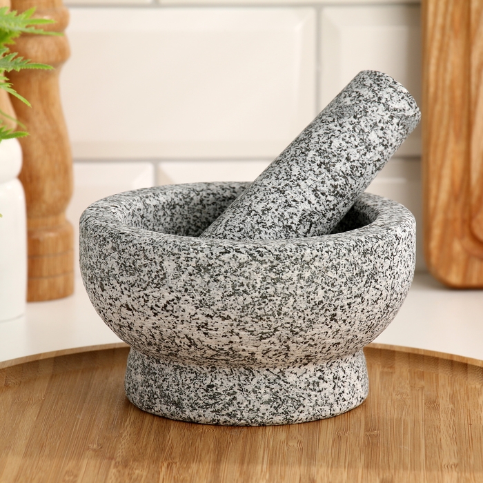 Ступка с пестиком из камня большая, 450 мл, серая, в коробке
