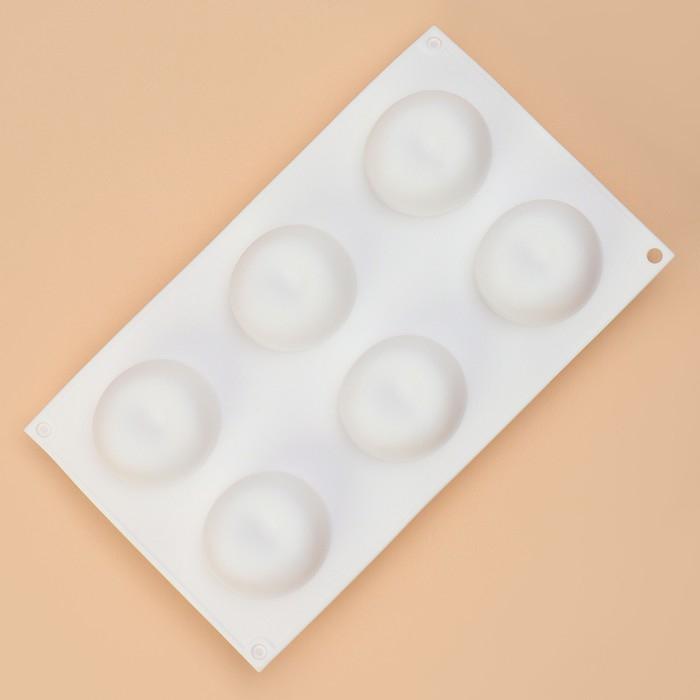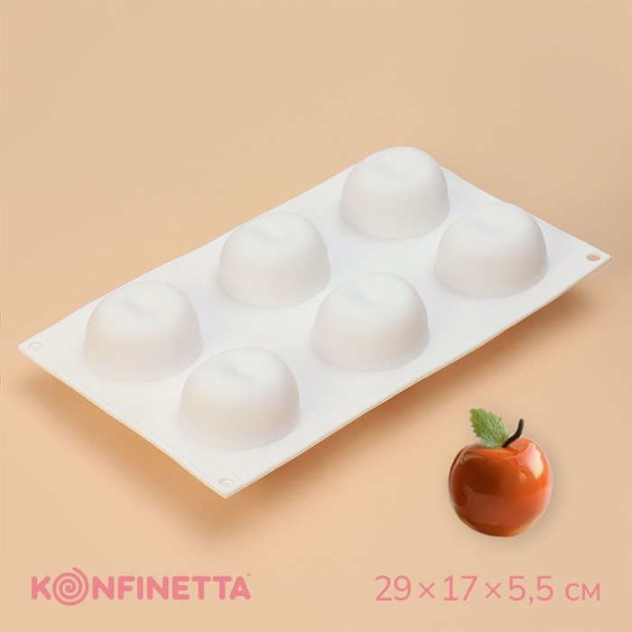 Форма для муссовых десертов и выпечки Доляна «Яблоко», силикон, 29×17×5,5 см, 6 ячеек (d=6 см), цвет белый