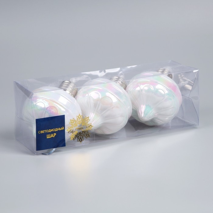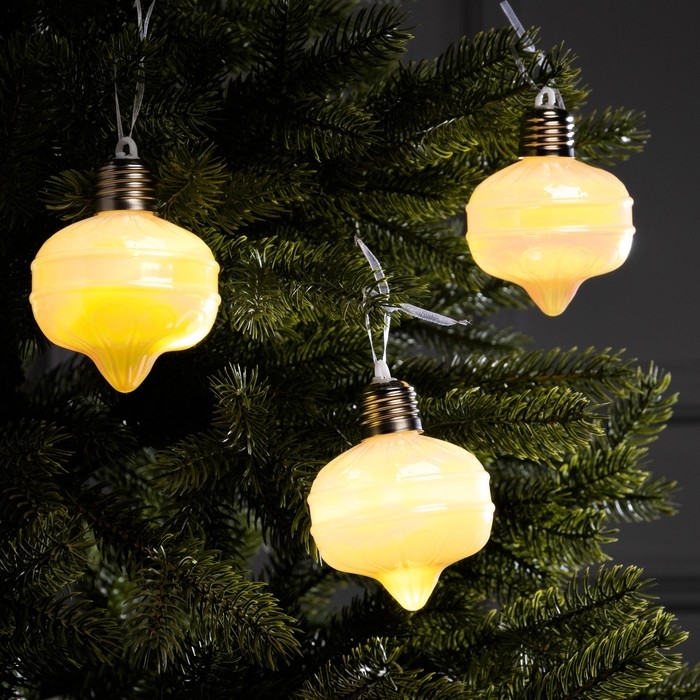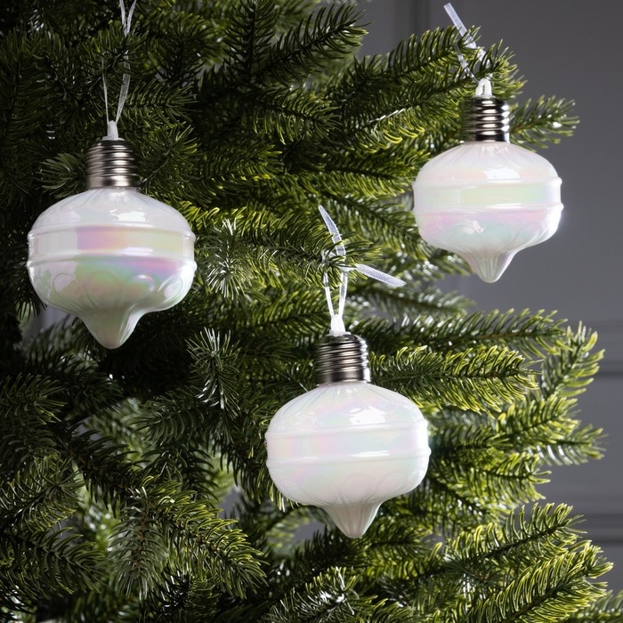 Набор елочных шаров "Ретро", 8х7 см, 3 LED, 3 шт, AG13x9, свечение тёплое белое