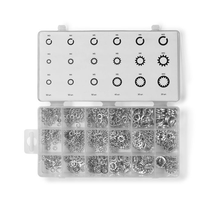Набор гроверы и корончатые шайбы ТУНДРА krep, 720 предметов