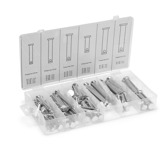 Набор штифтов с головкой и отверстим под шплинт ТУНДРА krep, 60 предметов