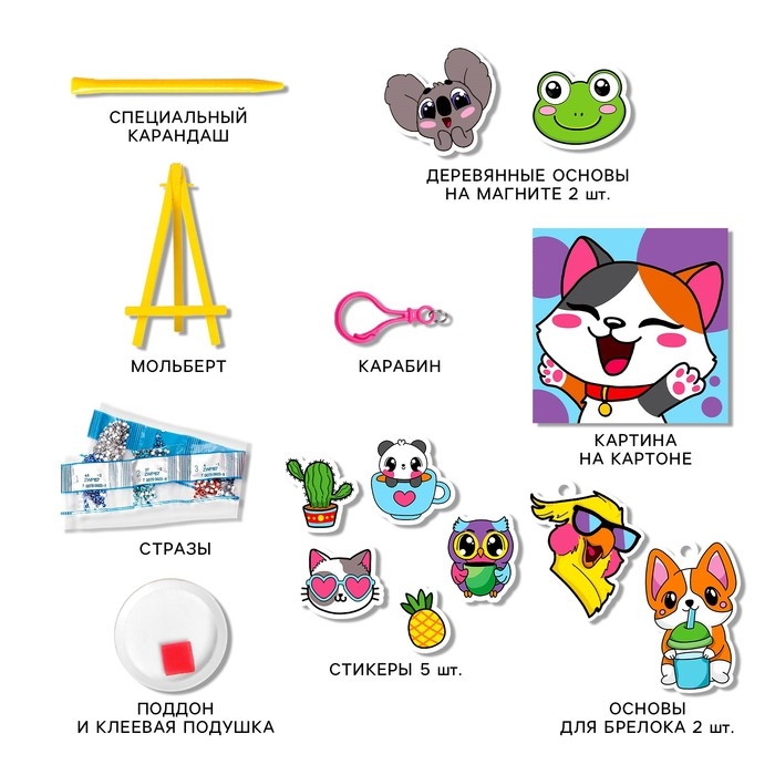 Набор алмазной мозаики 4 в1 "Милые животные"