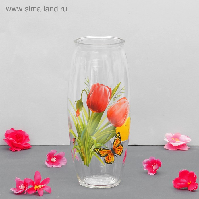 Ваза "Тюльпаны" с деколью, d=7см, H=23 см, V=1,15л