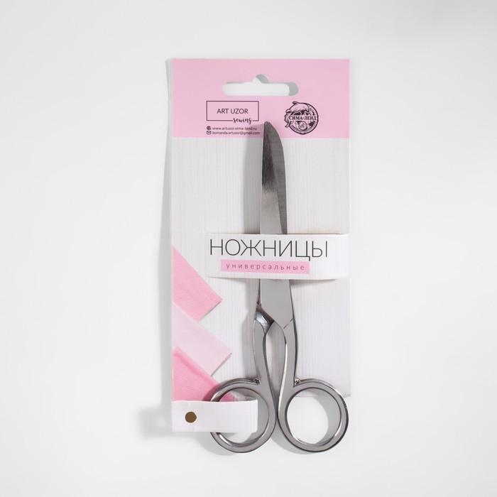 Универсальные ножницы подходят для использования в быту. Лезвия выполнены из нержавеющей стали. Благодаря ручкам эргономичной формы ножницы удобны в использовании.