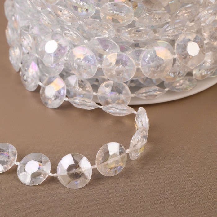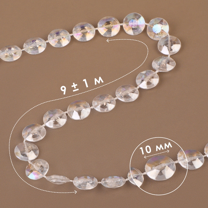Бусы на нитях, с голографией, 10 мм, 9 ± 1 м, цвет прозрачный