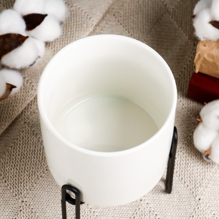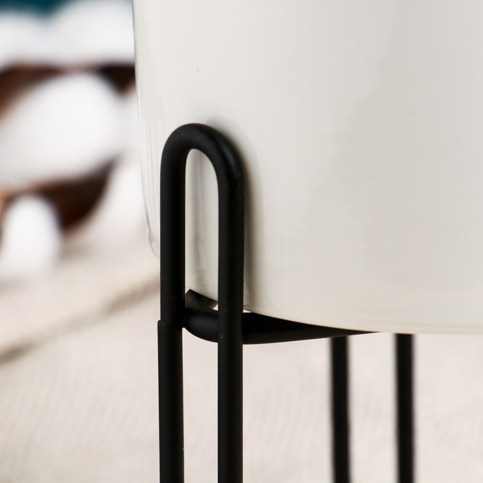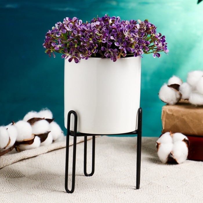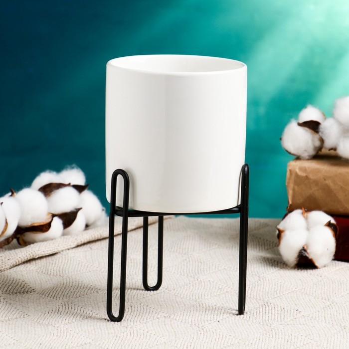 Кашпо "Цилиндр" белое, на черной подставке, 14х10х10см