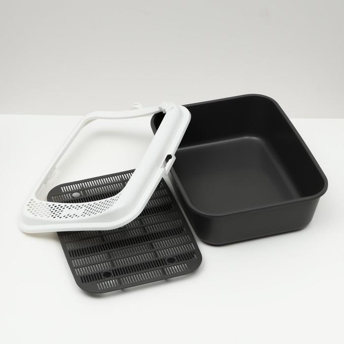 Туалет с прозрачными бортами с совком и фильтром, 50 х 34 х 18 см, чёрный