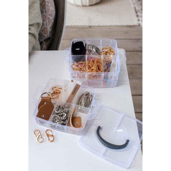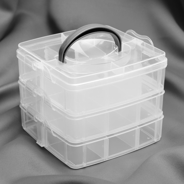 Органайзер для рукоделия, со съёмными ячейками, 3 яруса по 6 отделений, 15 × 16 × 12,5 см, с ручкой, цвет прозрачный