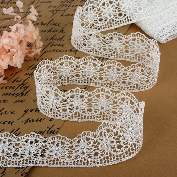 Кружево гипюровое, 45 мм × 6,8 ± 0,5 м, цвет белый