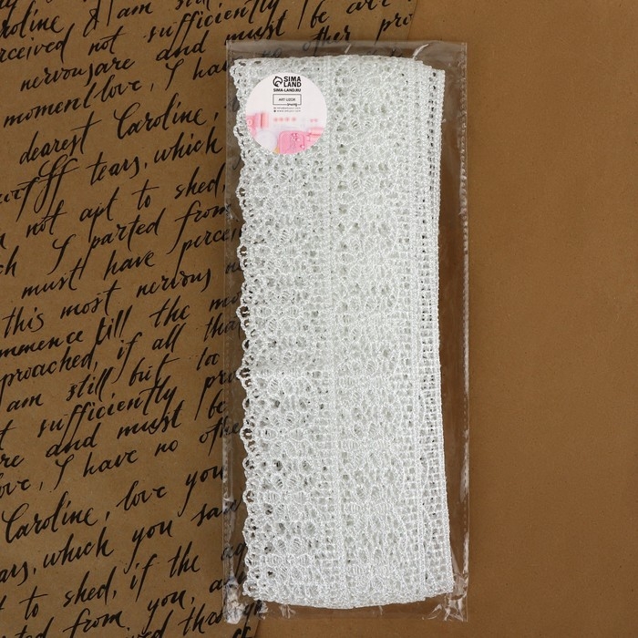 Кружево вязаное, 60 мм × 15 ± 1 м, цвет белый