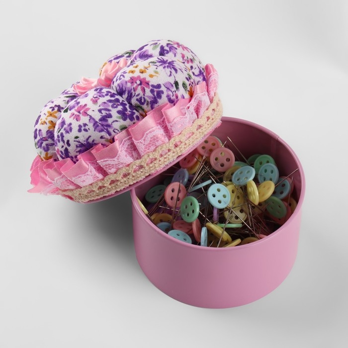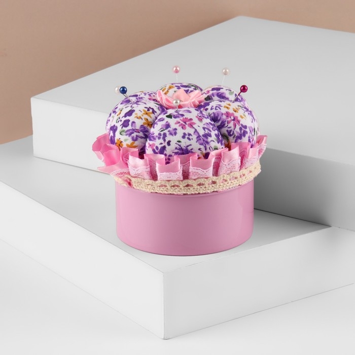 Игольница со шкатулкой для хранения мелочей, 8 × 7,8 × 7,8 см, цвет розовый
