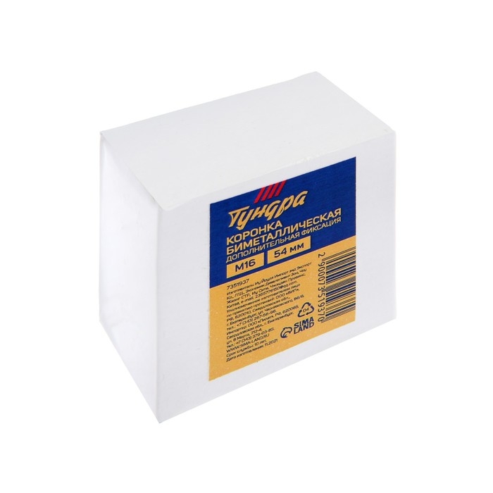 Коронка биметаллическая ТУНДРА, 54 мм, M16 с дополнительной фиксацией