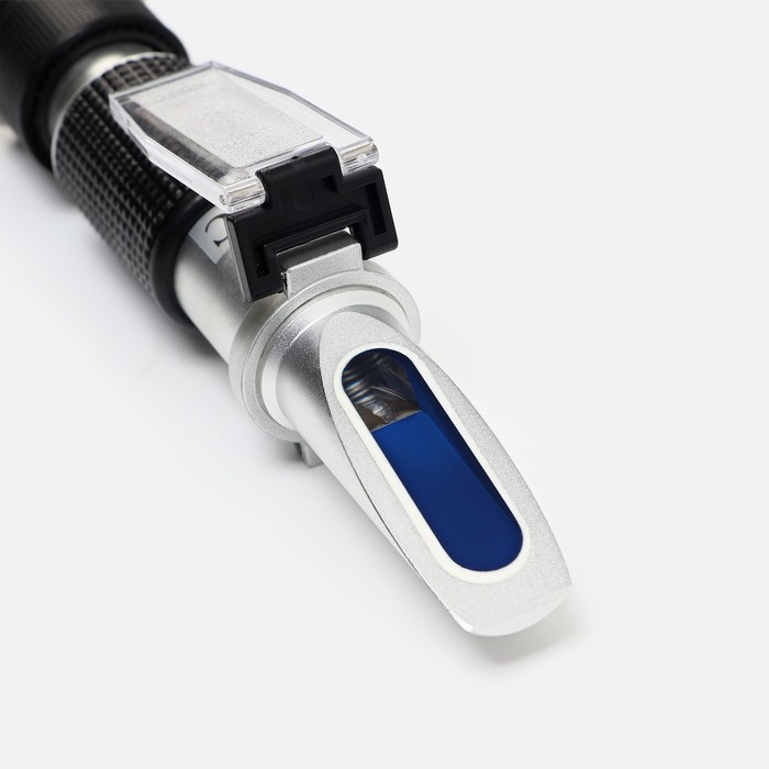Рефрактометр - специальный оптический прибор, который используется для измерения автомобильных жидкостей: электролита, омывающей жидкости, антифриза и AdBlue (мочевины). Результат работы устройства получается посредством измерения степени преломления (рефракции) света в растворе. Общий принцип работы любого рефрактометра: капнуть каплю измеряемой жидкости на стекло внутри устройства, закрыть крышкой, далее направить рефрактометр на источник света и смотреть в окуляр: измерения снимаются с помощью линии раздела синего поля и светлого поля. Во время измерения важно следить, чтобы исследуемый раствор полностью растекался по призме рефрактометра. После проведения измерения призму и защитное стекло рефрактометра нужно сразу очистить от остатков раствора. Прибор имеет три шкалы - измерение электролита (диапазон проверяемой плотности аккумуляторов: 1 г/с м3 - 1,3 г/с м3), шкала для охлаждающей жидкости антифриза (на основе этиленгликоля G11/G12/G12+/G12++ и пропиленгликоля G13 диапазон проверяемых точек замерзания: от 0 до -50 градусов, определение температуры замерзания омывающей жидкости стеклоомывателя (от 0 до -40 градусов) и содержание мочевины в AdBlue (30-35%)