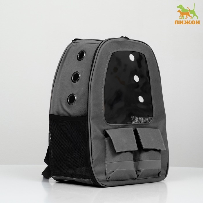 Рюкзак для переноски кошек и собак, с окном для обзора, серый