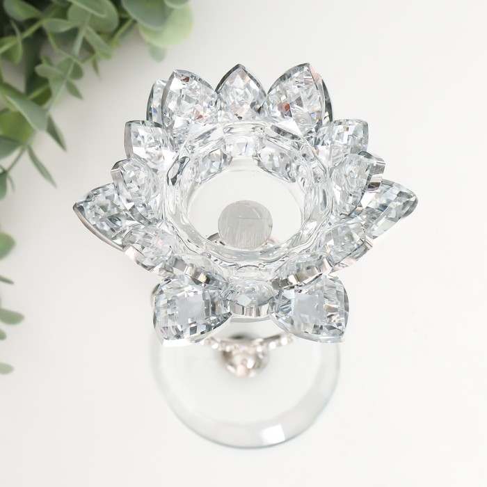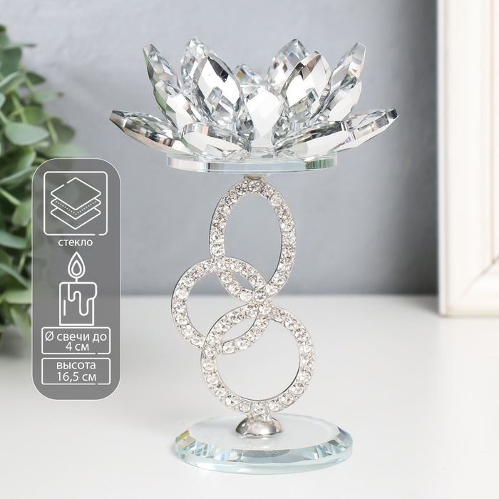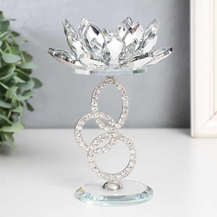 Подсвечник стекло, металл на 1 свечу "Лотос на кольцах" d-4 см 11,2х9х16,5 см