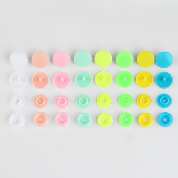 В наборе пластиковых кнопок: 15 разных цветов по 10 штук. В наборе разноцветные кнопки, не все варианты могут быть представлены на фото.