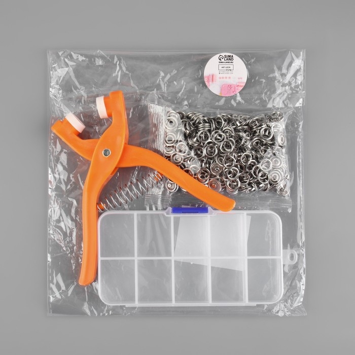 Щипцы для установки открытых рубашечных кнопок d = 9,5 мм, с кнопками 100 шт, в органайзере, цвет МИКС