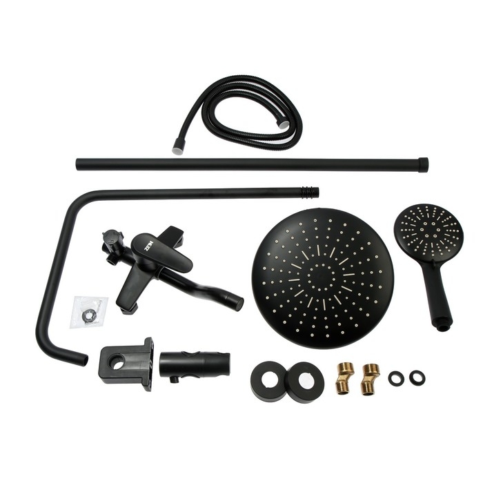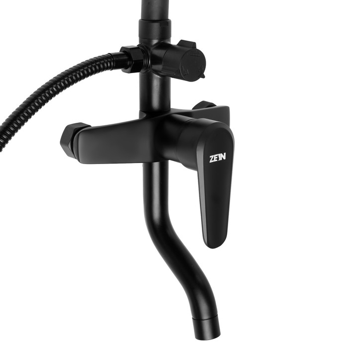 Душевая система ZEIN ZS-1BL, смеситель, тропическая и ручная лейка 3 режима, латунь, черная