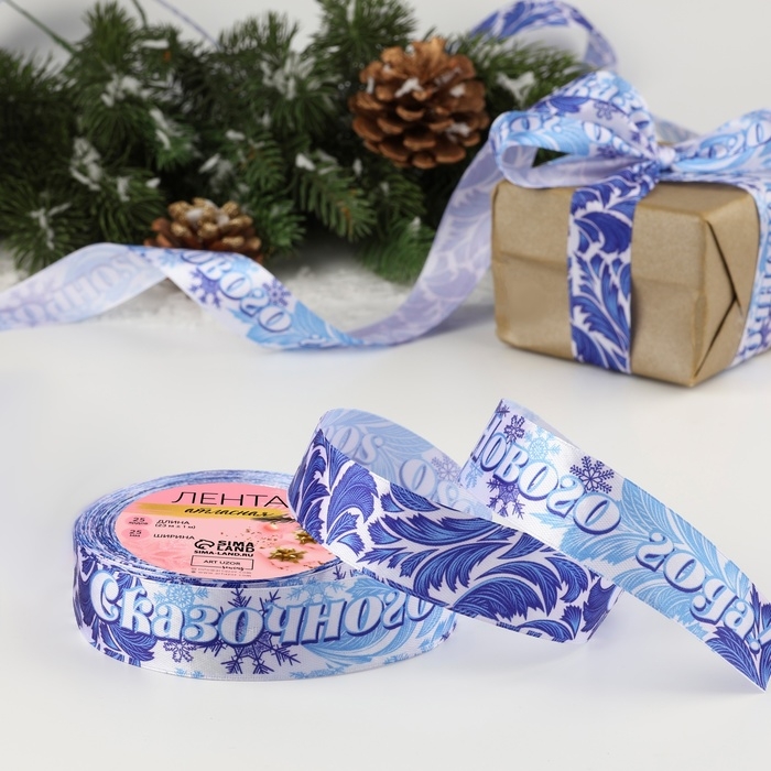 Лента атласная «Морозко», 25 мм, 23 ± 1 м