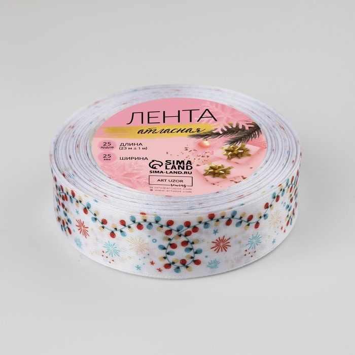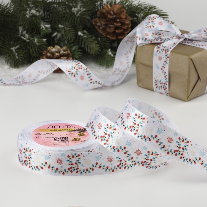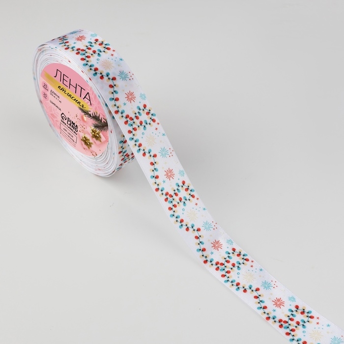 Лента атласная «Морозко», 25 мм, 23 ± 1 м