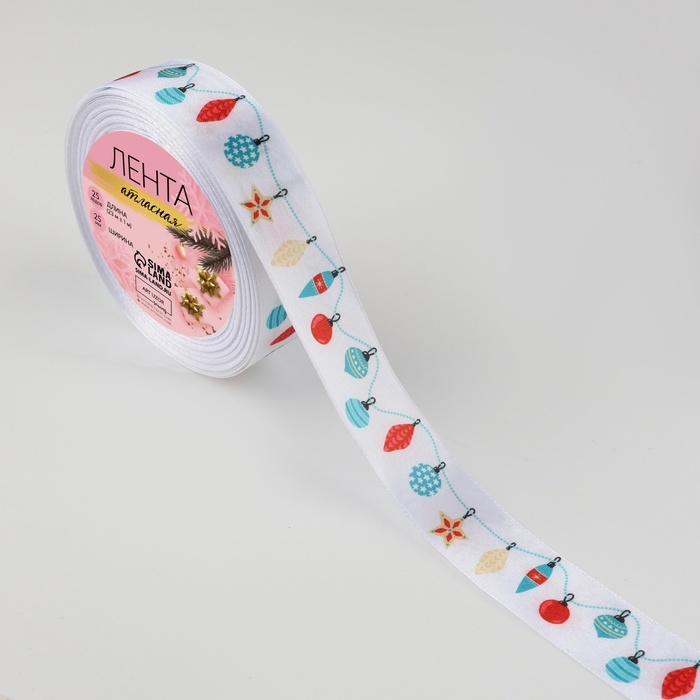 Лента атласная «Морозко», 25 мм, 23 ± 1 м
