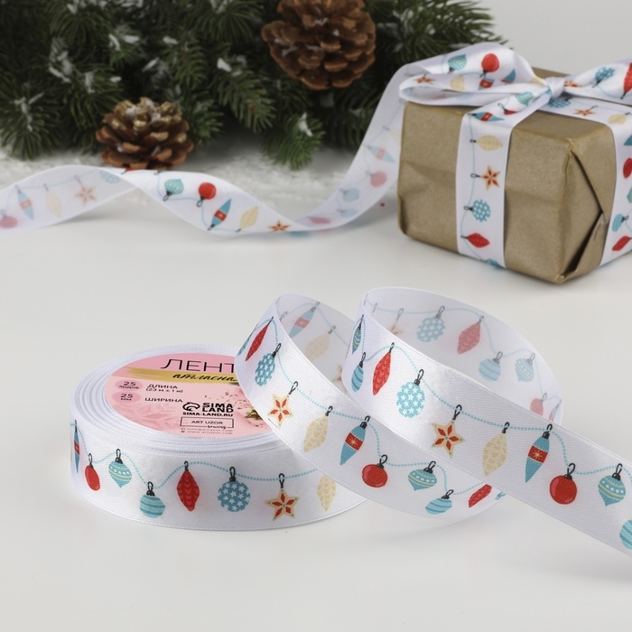 Новогодняя лента является универсальным помощником при изготовлении рукоделий, украшении интерьера, упаковке подарков и другого.
