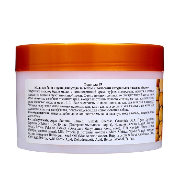 Мыло для бани и душа, для ухода за телом и волосами натуральное таежное "Белое" 450 мл