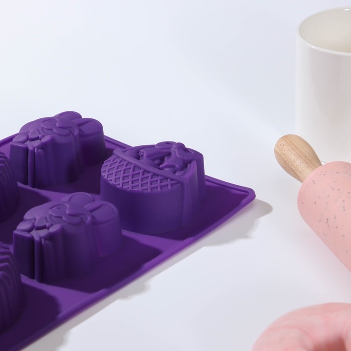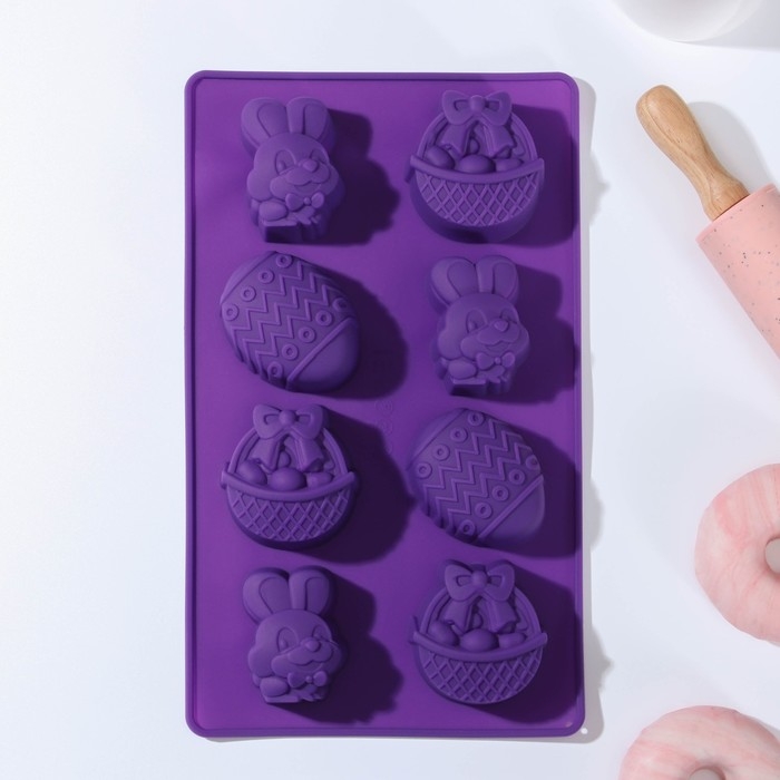 Форма для выпечки Доляна «Пасха», силикон, 29×17 см, 8 ячеек (6,5×5,2 см), цвет МИКС