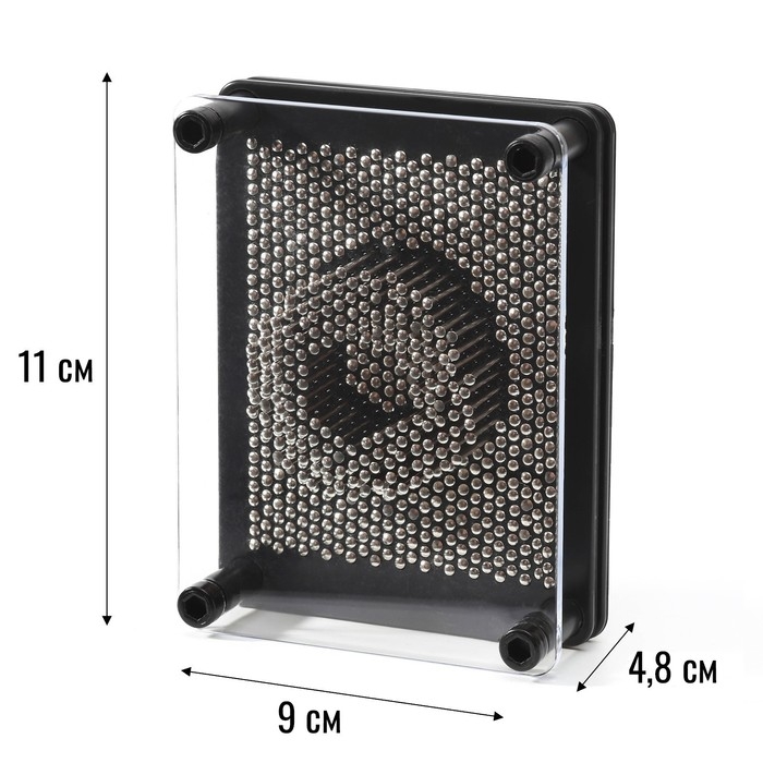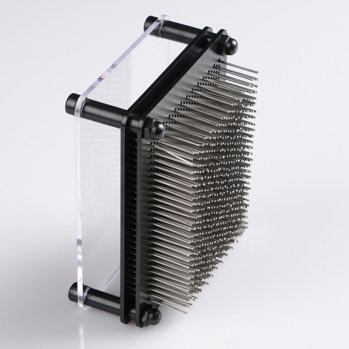Игрушка антистресс "PinART", экспресс скульптор 3d, 9 х 4.8 х 11 см — прибор, представляющий собой пластину-основание, на которой закреплены несколько сотен металлических стерженьков-гвоздиков, закрытых прозрачной передней панелью.