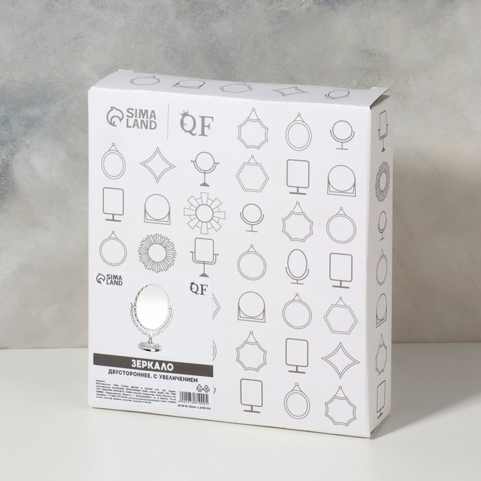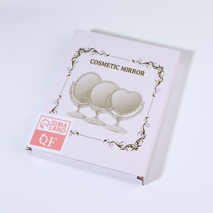 Изящное зеркало на ножке — украшение для туалетного столика. Конструкция не расшатывается и устойчиво держится на поверхности. Увеличивающая линза пригодится, чтобы рассмотреть детали макияжа.