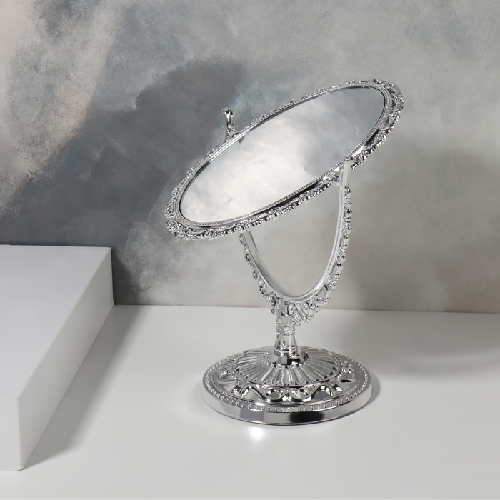 Зеркало настольное «Овал», двустороннее, с увеличением, зеркальная поверхность 9 × 12 см, цвет серебристый