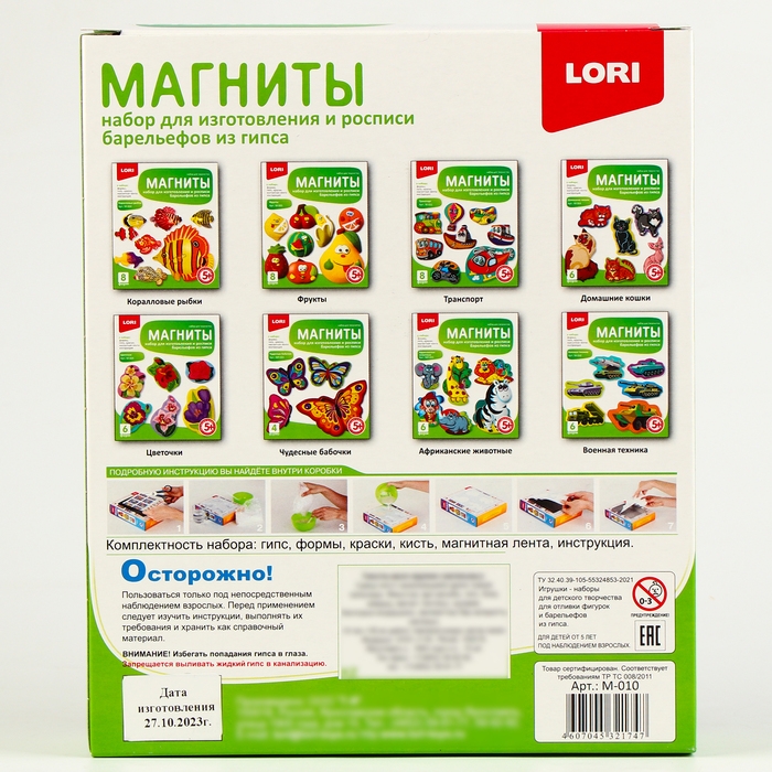 Процесс создания наборов для творчества «Магниты из гипса» — интересное и увлекательное занятие. Гипс — это гипоаллергенный материал, который легко принимает любые формы и хорошо покрывается краской. Сделать красивую фигурку не составит труда, а весь процесс принесёт пользу для развития малыша.