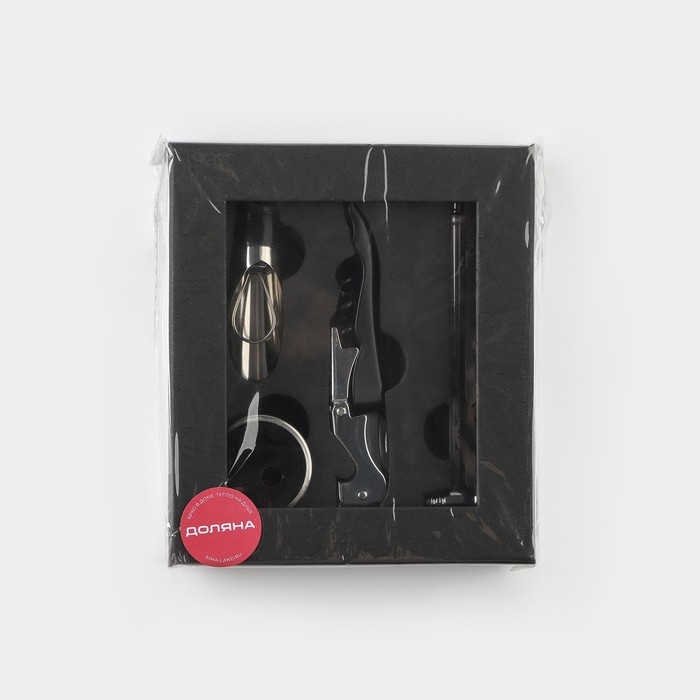 Набор для вина в кейсе Доляна «Бутылка», 5 предметов: пробка, кольцо, каплеуловитель, штопор, нож для срезания фольги